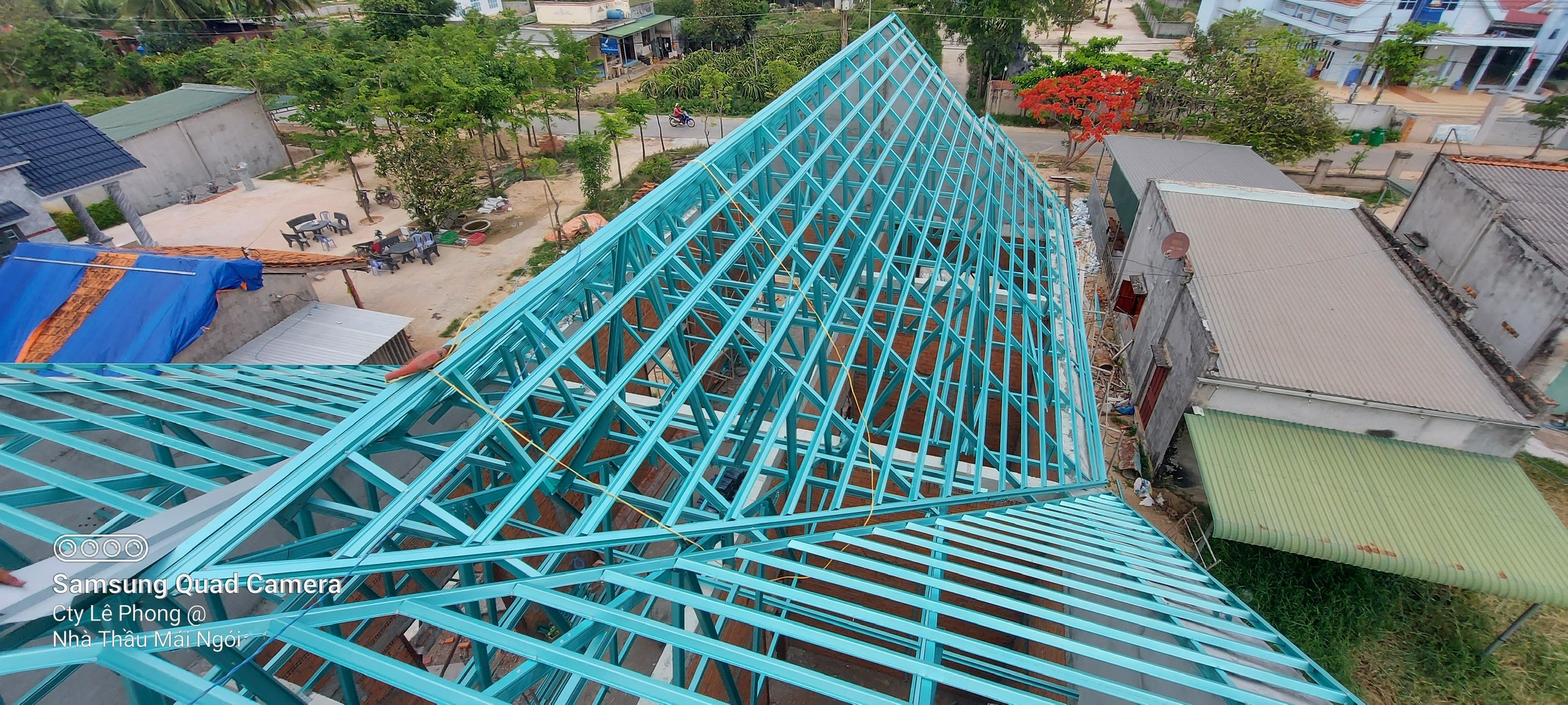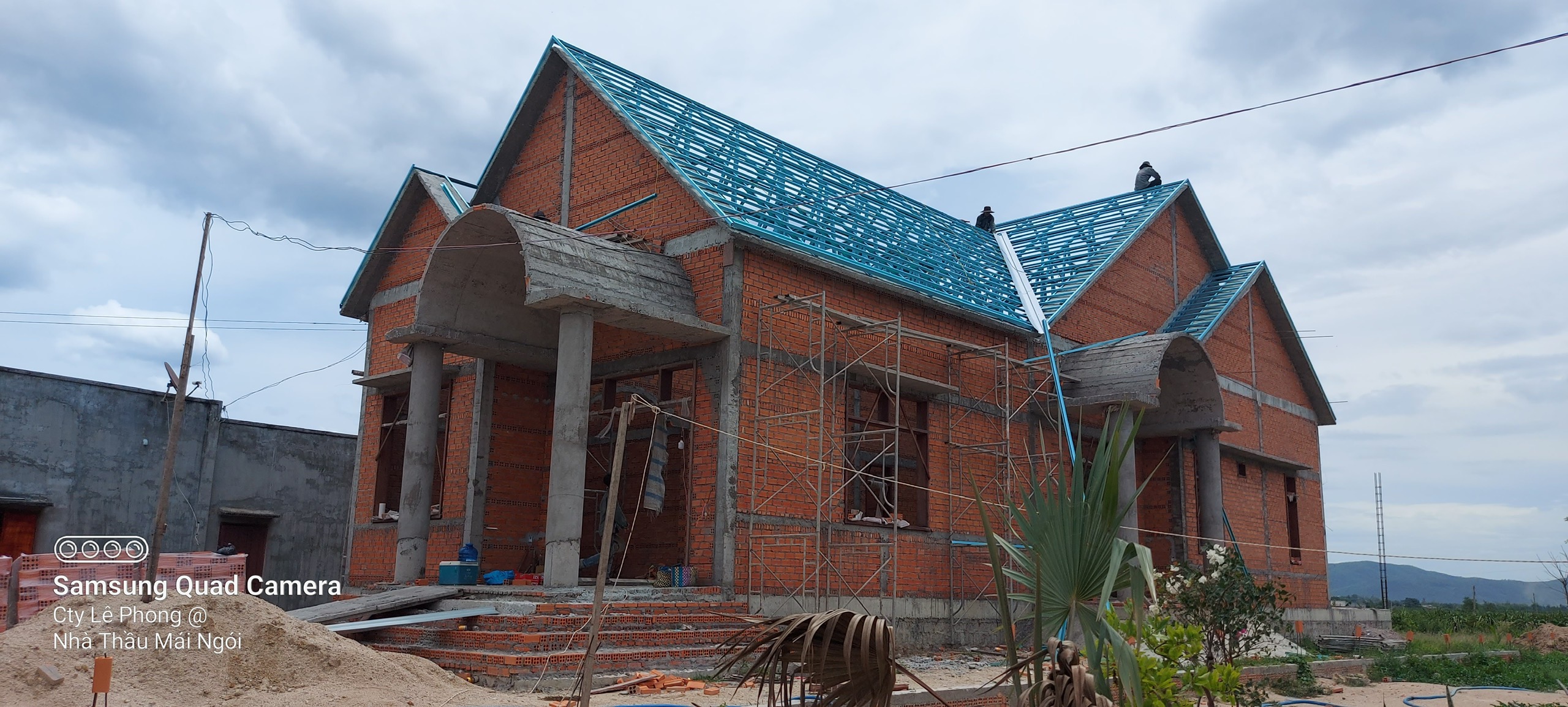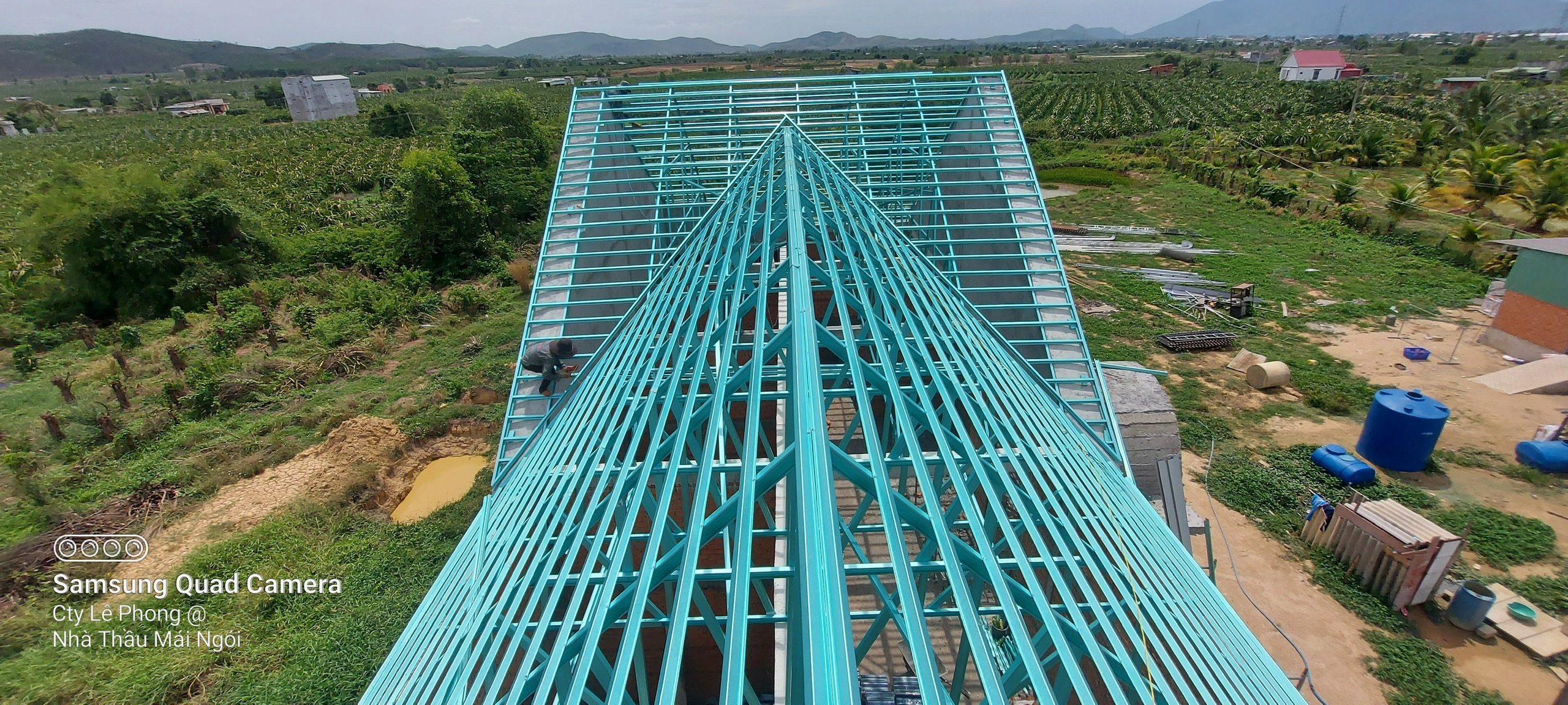 Diện tích mái 309m2 sử dụng hệ khung kèo Xà Gồ Zacs AZ70 và ngói nhật Kamaki - japan.