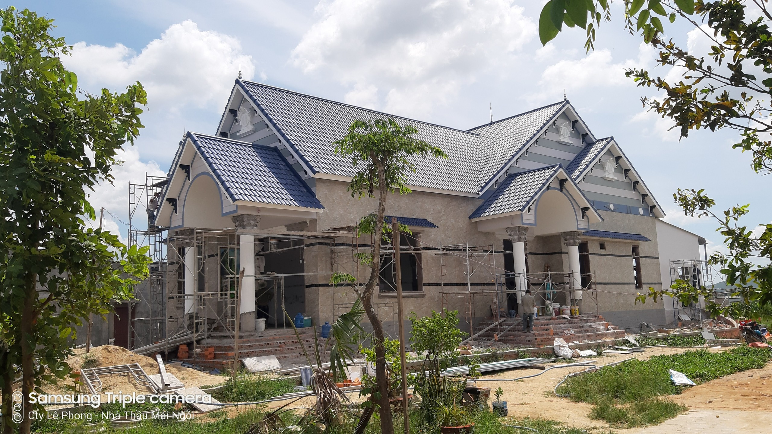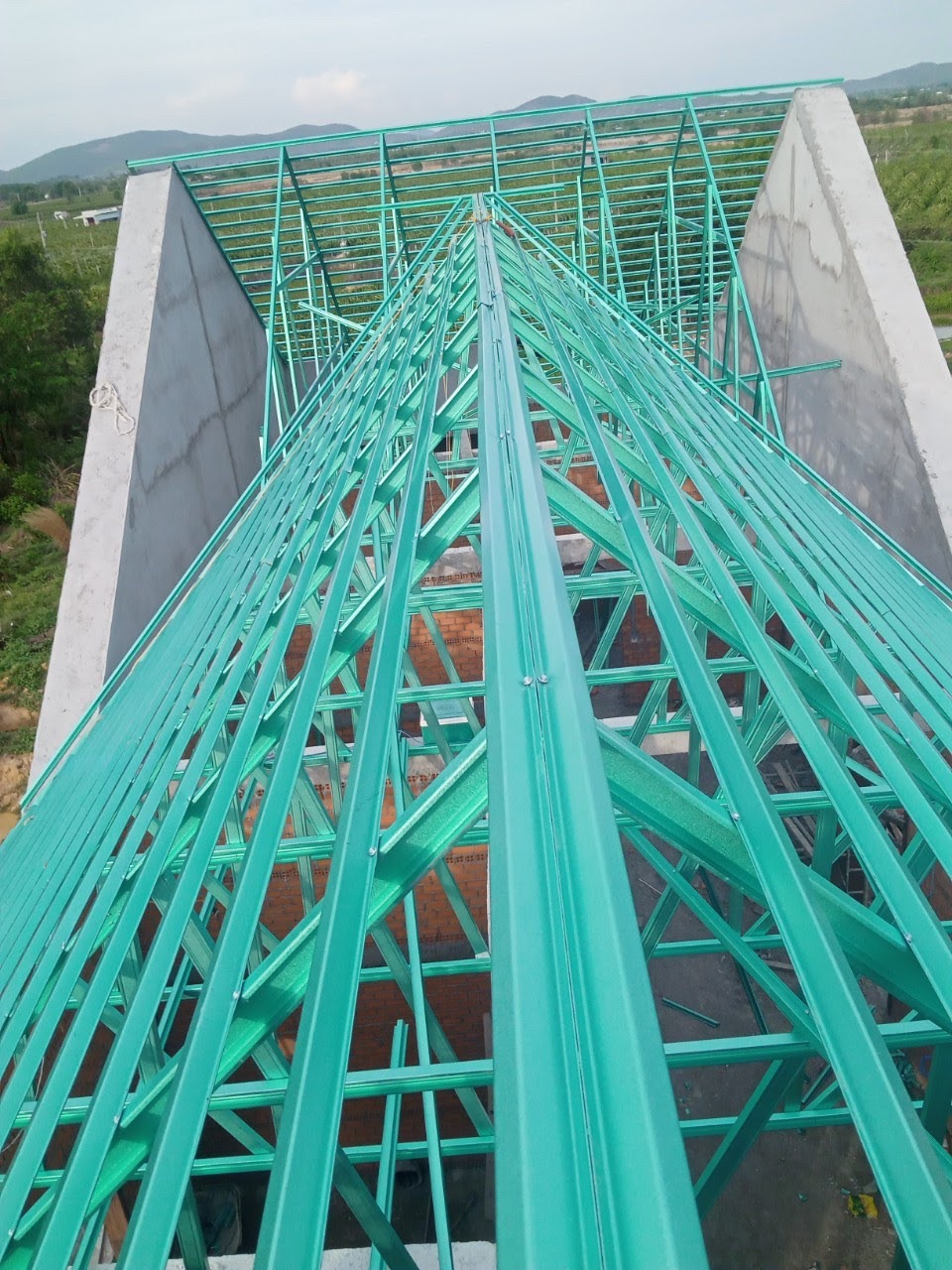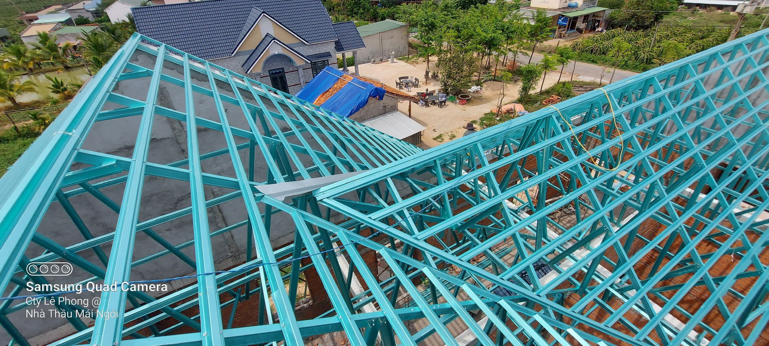 Diện tích mái 309m2 sử dụng hệ khung kèo Xà Gồ Zacs AZ70 và ngói nhật Kamaki - japan.