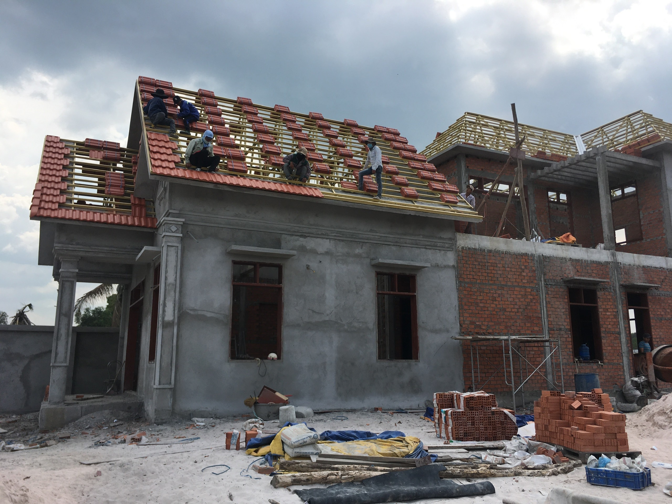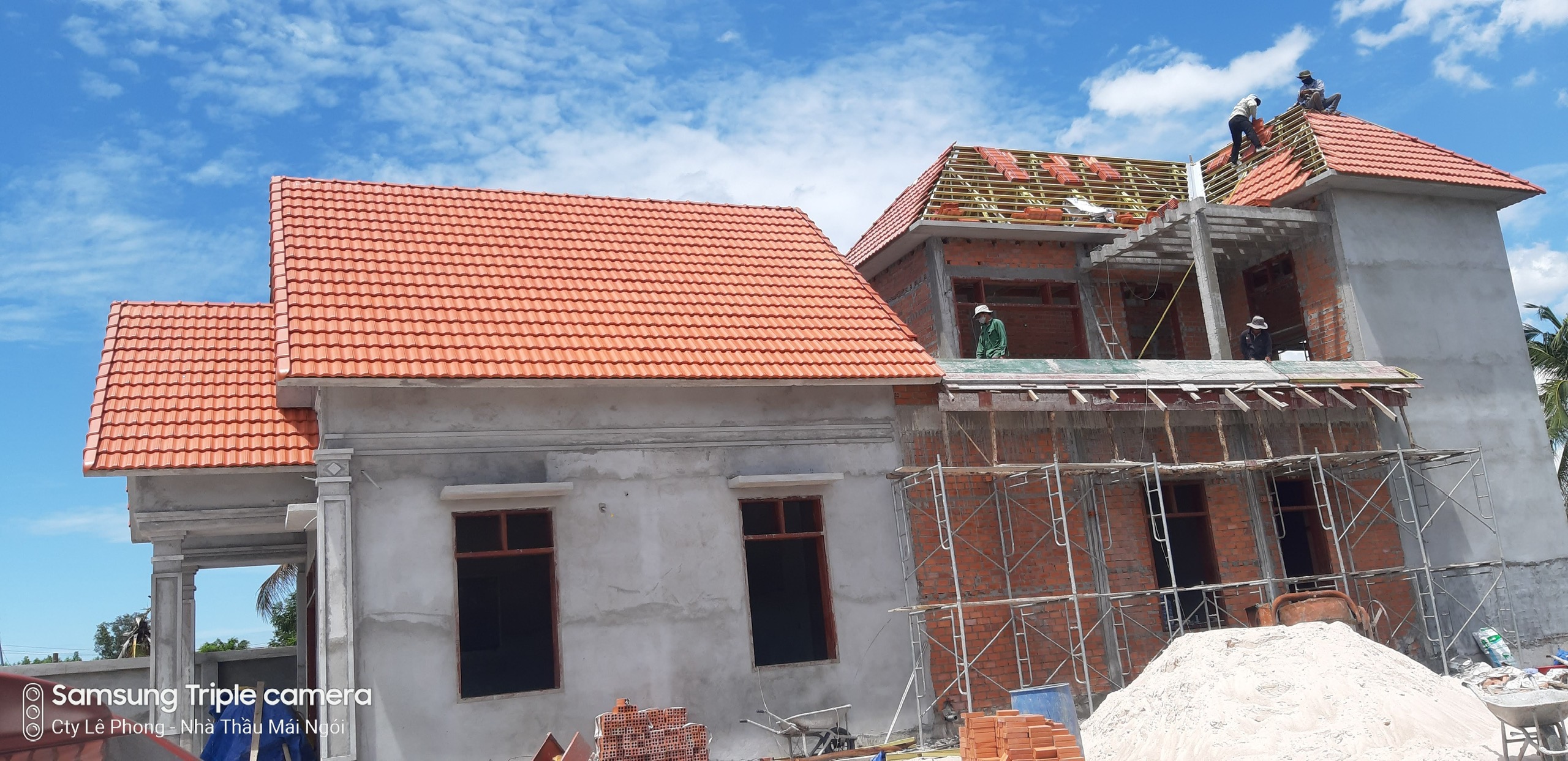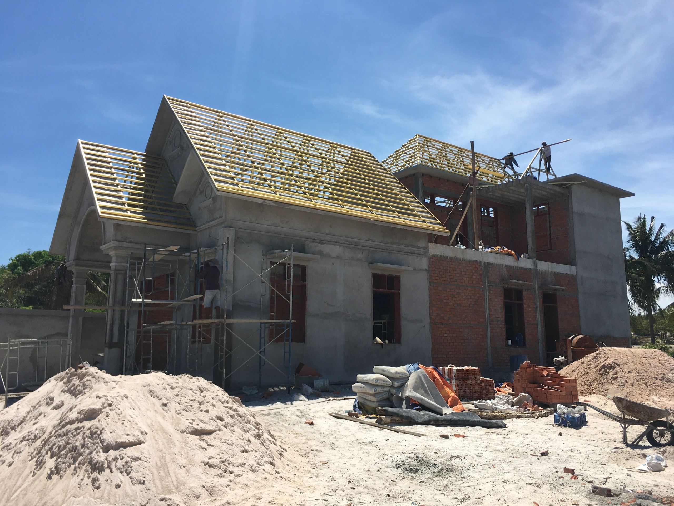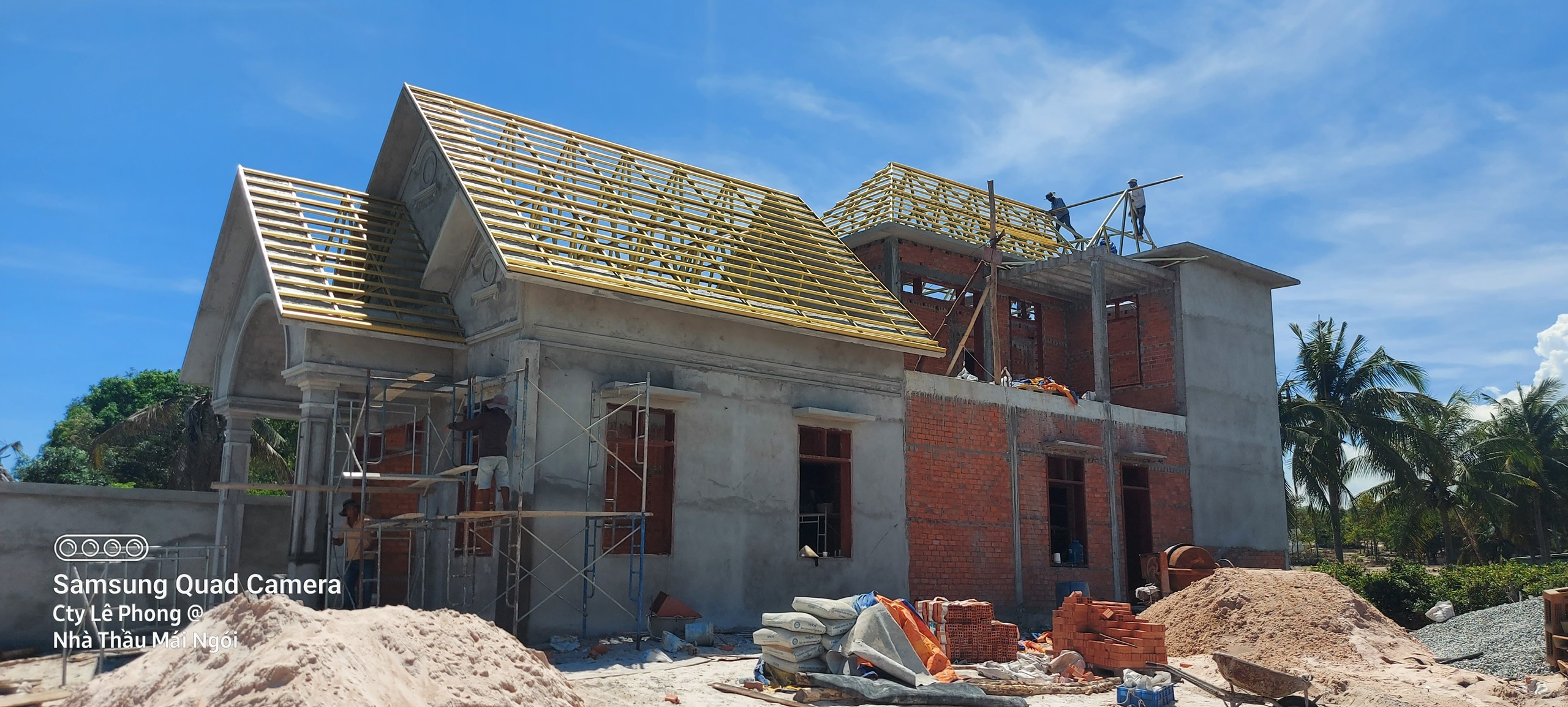 Diện tích mái 255m2 sử dụng hệ khung kèo Eratruss AZ100 sản phẩm của tập đoàn Austdoor và ngói Đồng Nai tráng men 10v/1m2