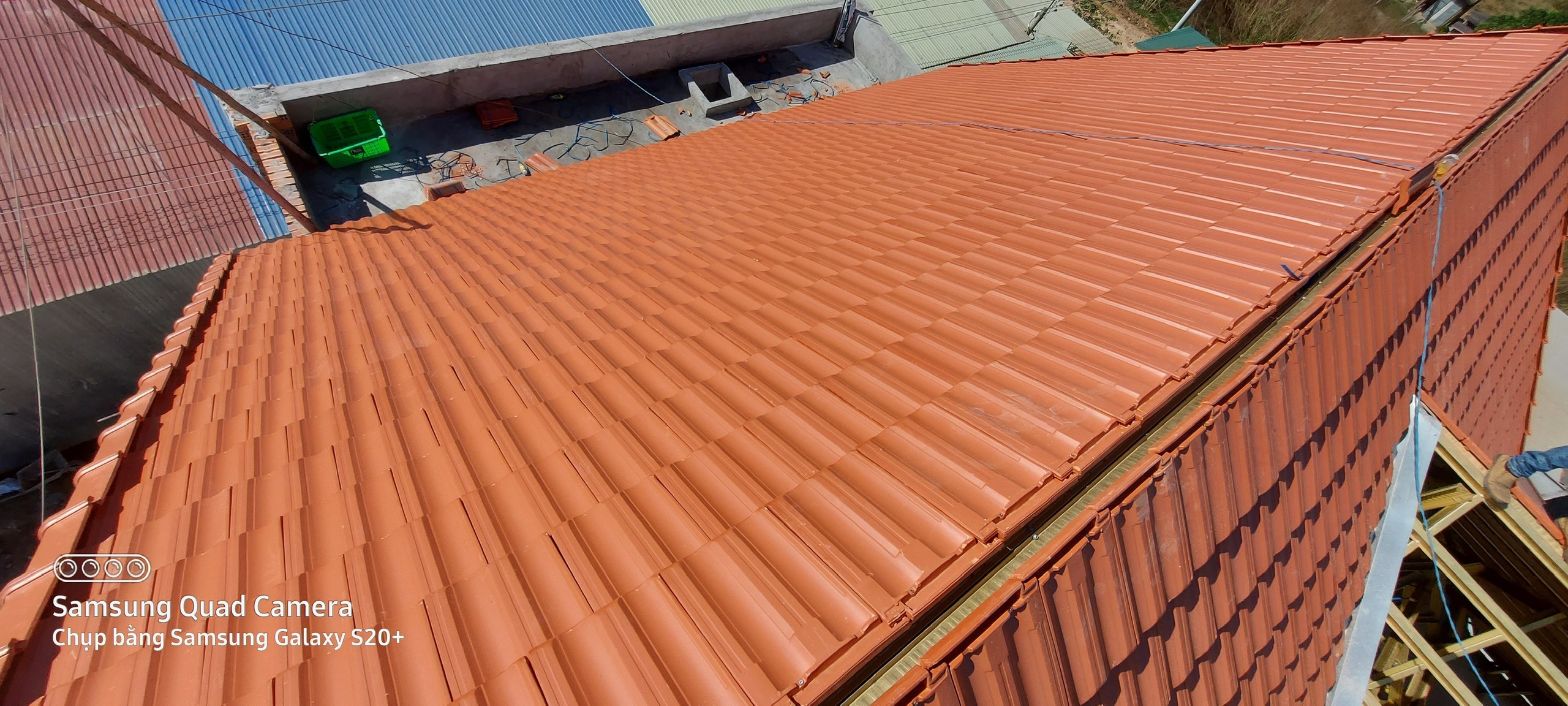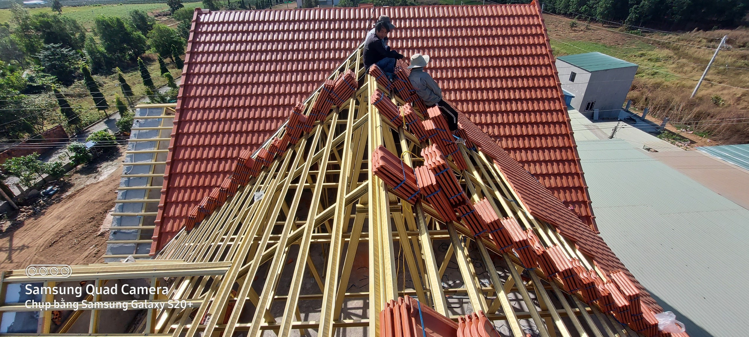 Diện tích mái 260m2 sử dụng hệ khung kèo Eratruss AZ100 sản phẩm của tập đoàn Austdoor và ngói Đồng Nai tráng men 10v/1m2