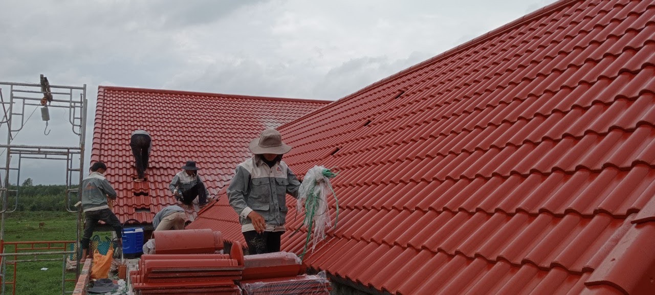 Diện tích mái 236m2 sử dụng hệ khung kèo Eratruss AZ100 sản phẩm của tập đoàn Austdoor và ngói nhật Kamaki - Japan