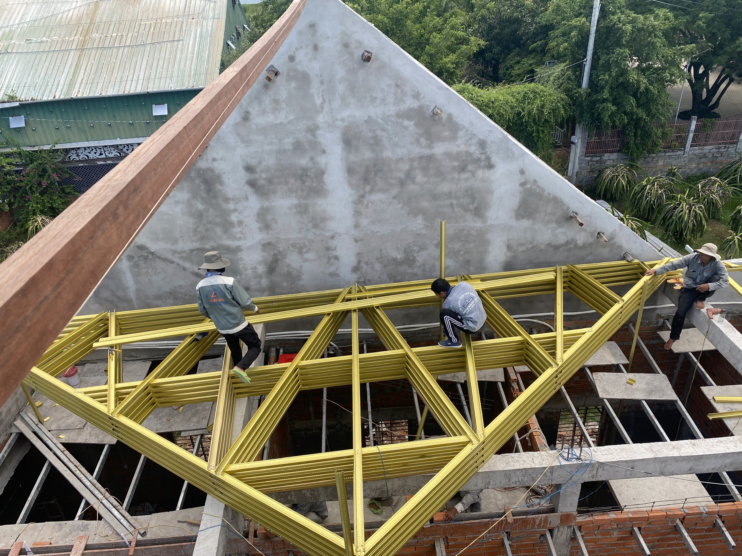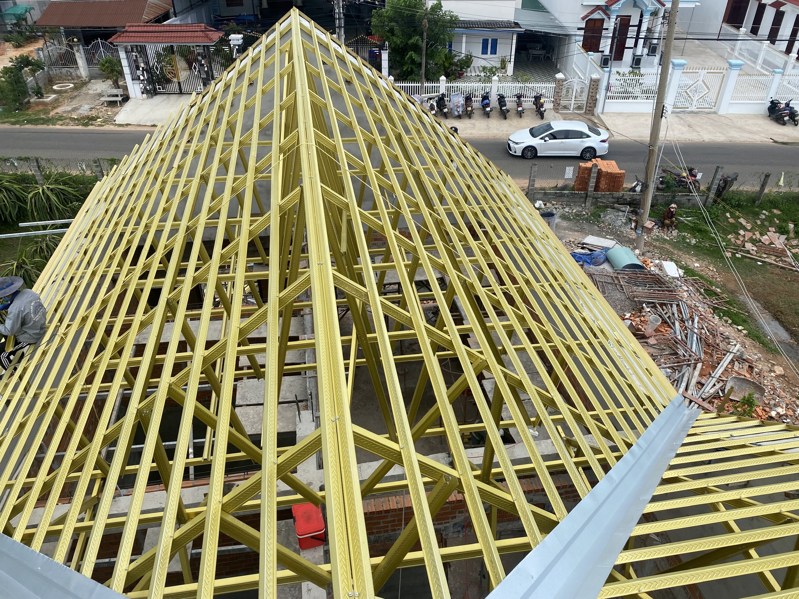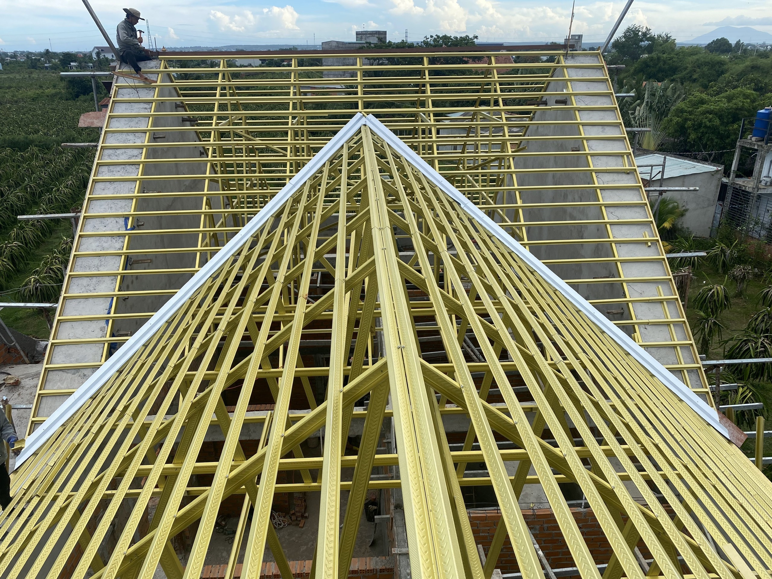 Diện tích mái 251m2 sử dụng hệ khung kèo Eratruss AZ100 sản phẩm của tập đoàn Austdoor và ngói nhật Kamaki - Japan