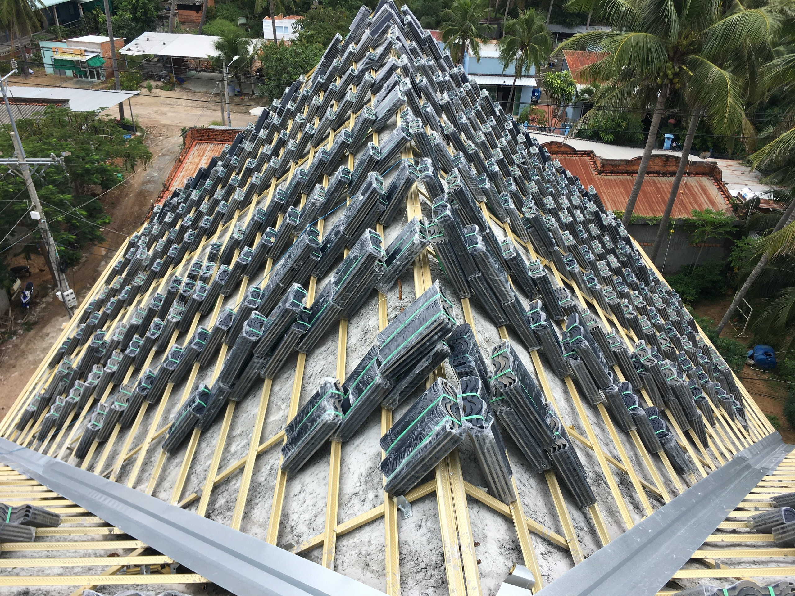 Diện tích mái 432m2 sử dụng hệ khung kèo Eratruss AZ100 sản phẩm của tập đoàn Austdoor và ngói nhật Kamaki - Japan