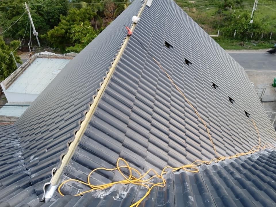 Diện tích mái 185m2 sử dụng hệ khung kèo Eratruss AZ100 sản phẩm của tập đoàn Austdoor và ngói nhật Kamaki - Japan