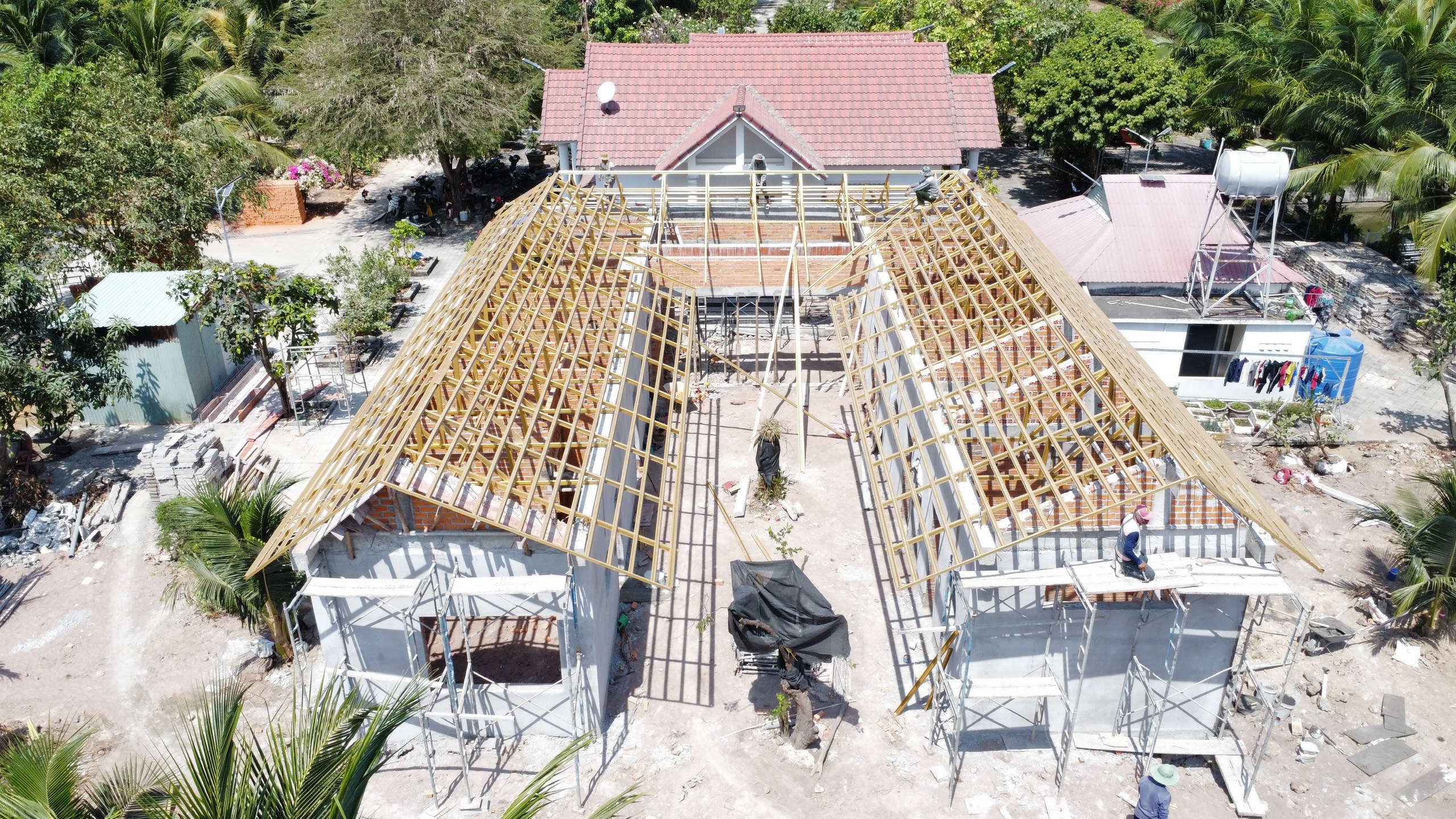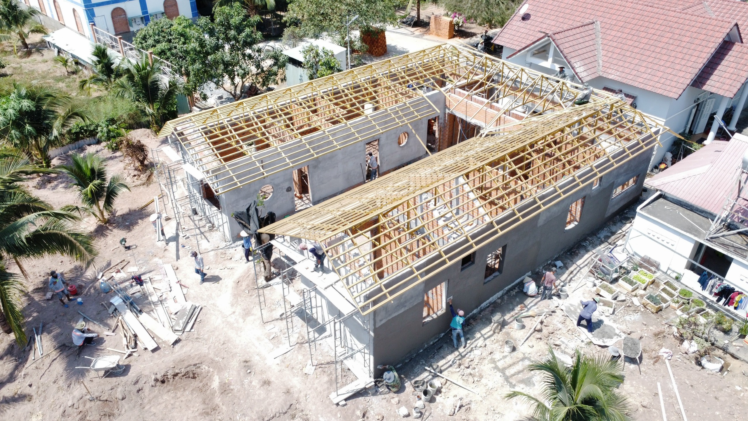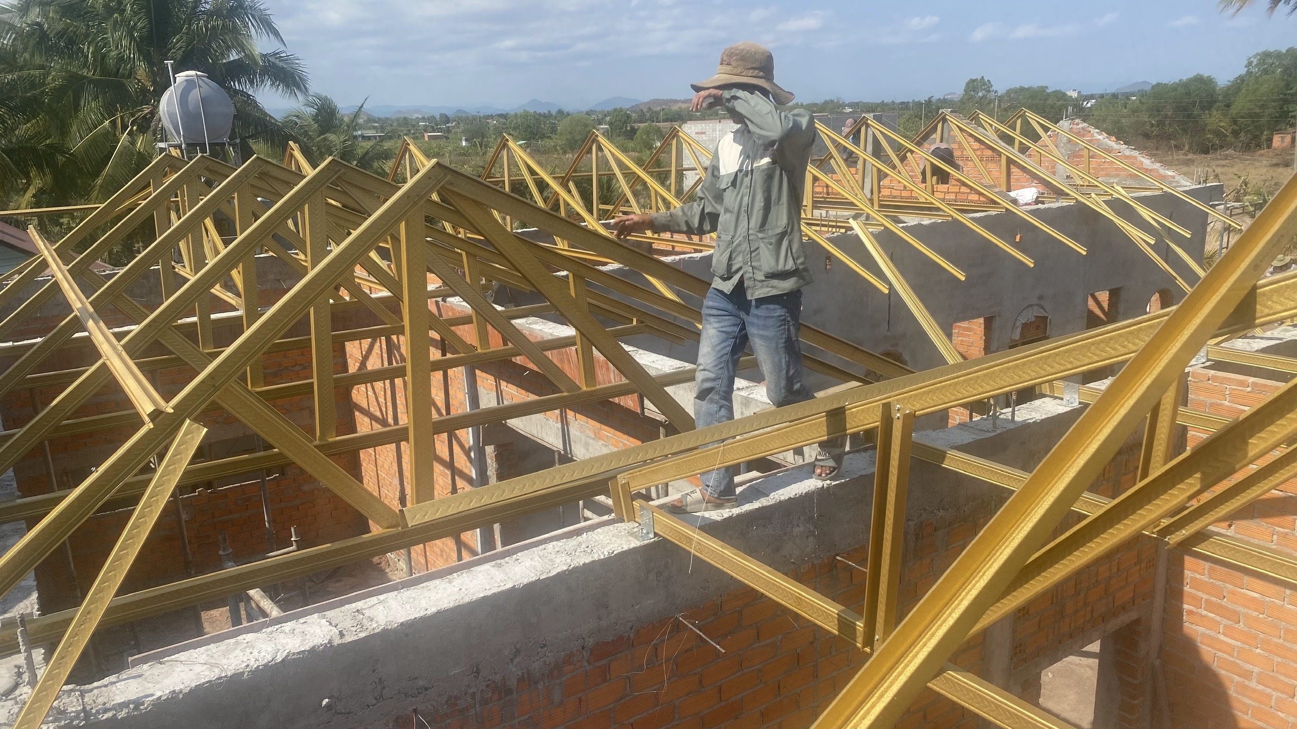Diện tích mái 274m2 sử dụng hệ khung kèo Eratruss AZ120 sản phẩm của tập đoàn Austdoor và ngói Thái SCG