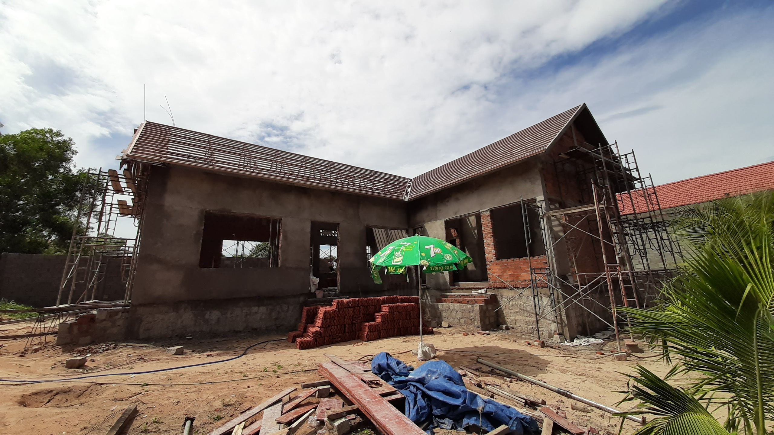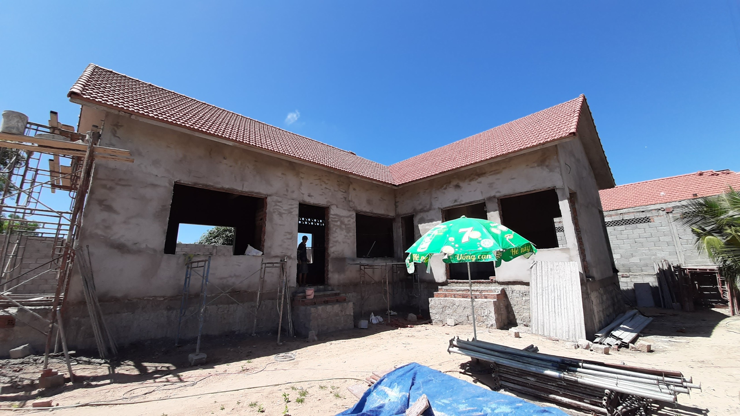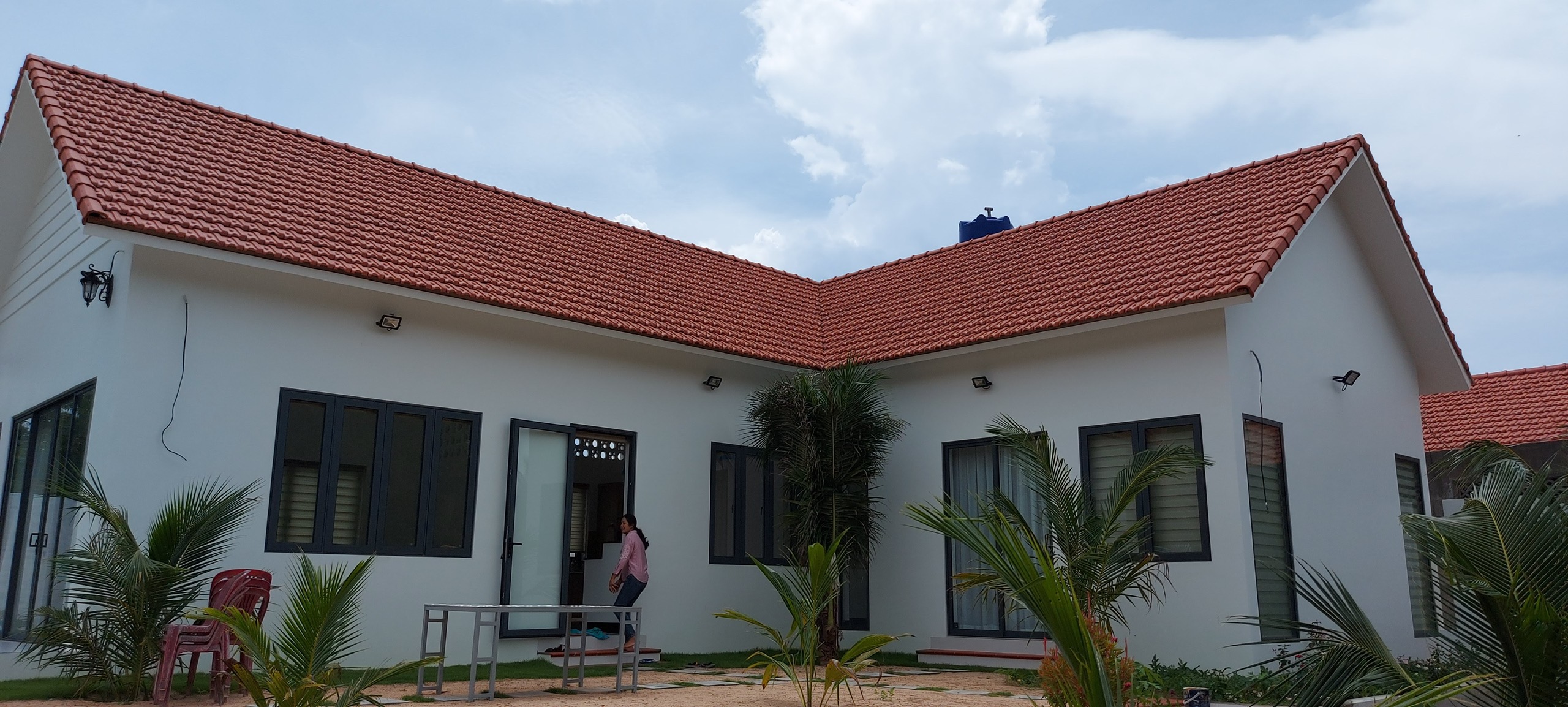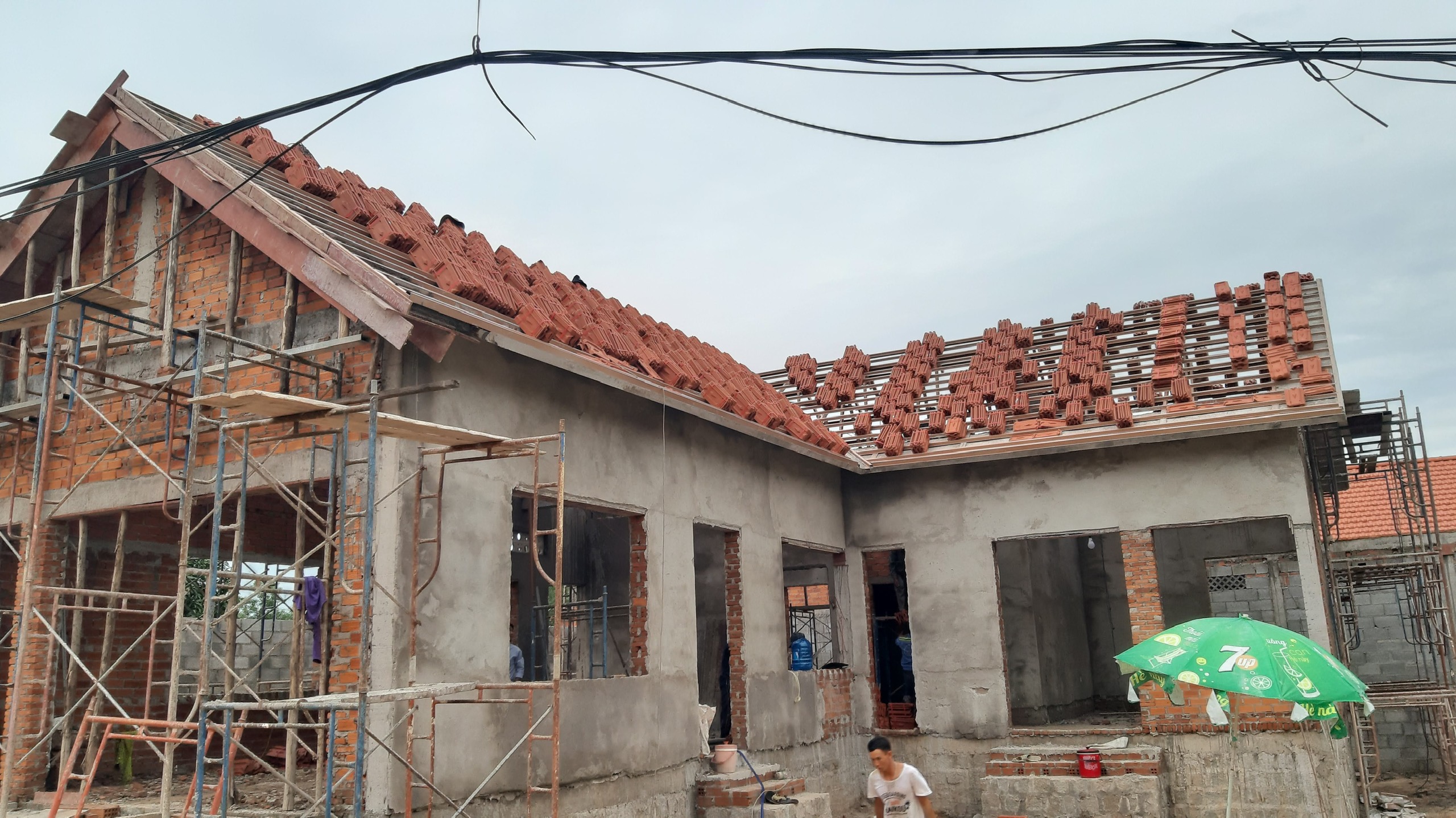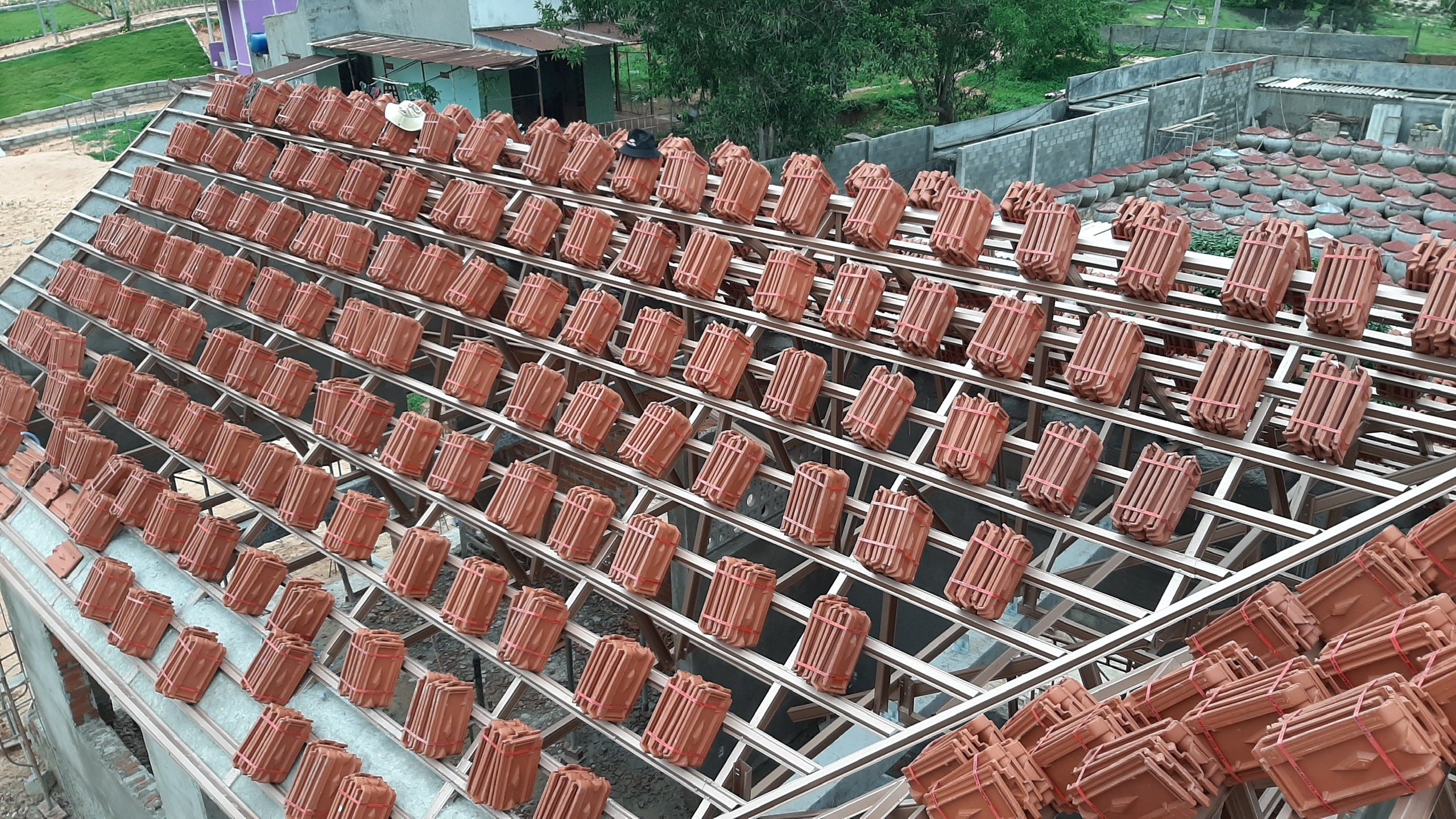 Diện tích mái 199m2 sử dụng hệ khung kèo Smartruss Az200 và ngói Hạ Long 22v/1m2 loại A1.